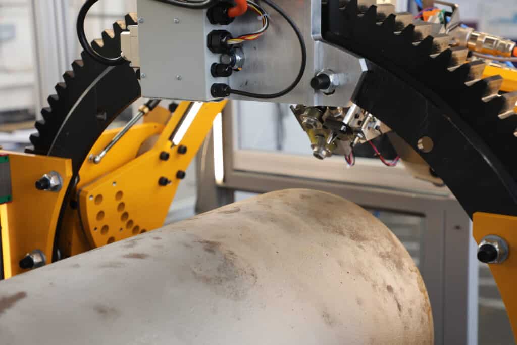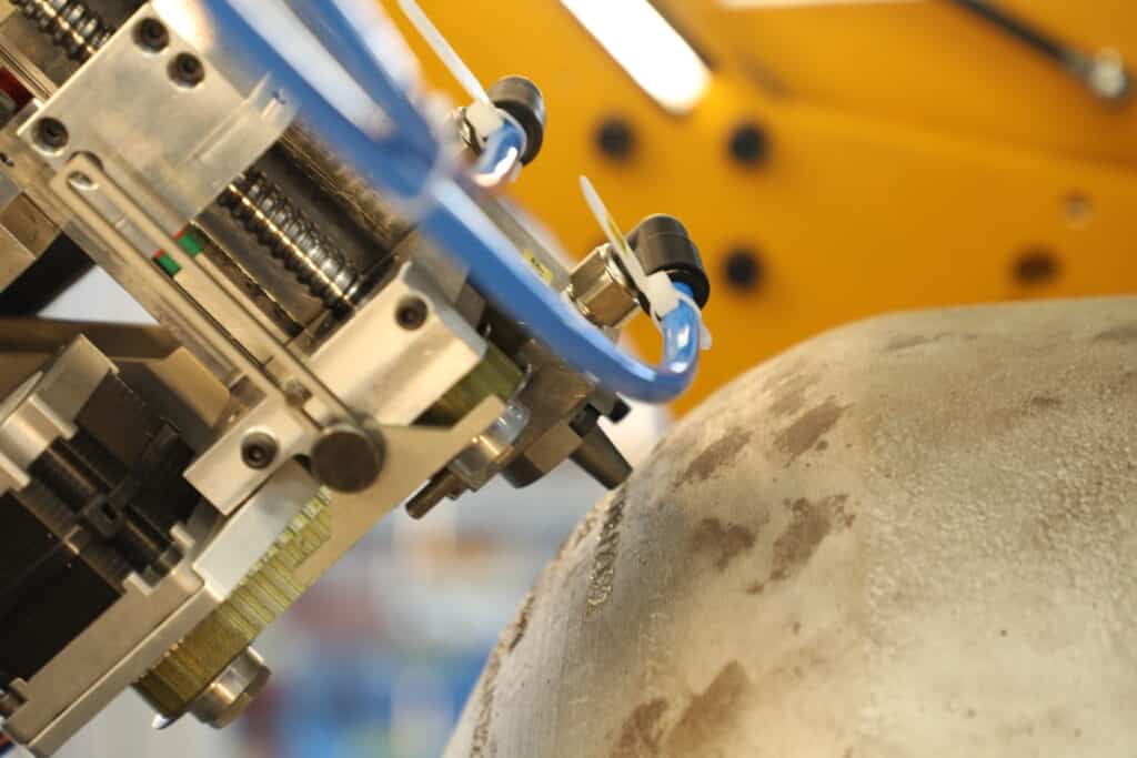 During the project evaluation phase, we quickly re-engineered one of our portable dot peen machines, maximising its marking depth capabilities. We then carried out on-site marking trials alongside the customer, to demonstrate a sufficient marking depth and feasibility to continue the project. This demonstration showcased our willingness to go the extra mile for our customers. Encouraged by the initial success, our team of skilled engineers then collaborated closely with Chesterfield Cylinders to design and deliver a specialised, automated marking system that could handle the diverse range of cylinder lengths, cylinder diameters and dome profiles. The assembly of the machine took place at our facility in Sheffield, followed by in-depth testing and acceptance by the customer.
